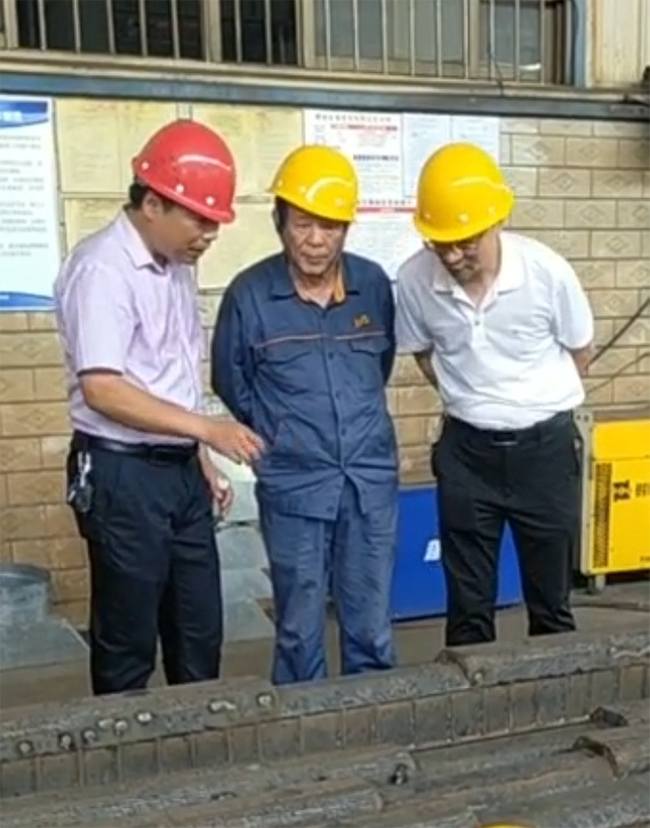2021年7月15日,公司再次邀請建黨100周年“七一勛章”獲得者艾愛國來我公司,就埋弧燒焊的焊嘴角度,電流電壓的匹配、滾子的轉速等技術難題,對我公司青年技師進行技術指導,公司總經理劉美林全程陪同。