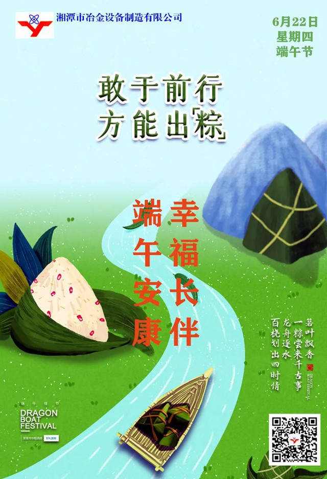 值此端午佳節(jié)來臨之際,湘潭市冶金設(shè)備祝所有客戶、朋友、伙伴以及湘冶家人們:端午安康!闔家團圓! 愿世間所有美好,都接“粽”而至,每個人都能品嘗到時光的香甜,在仲夏的日子里順利、平和。