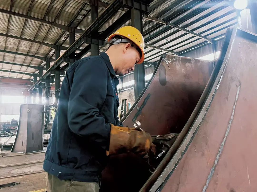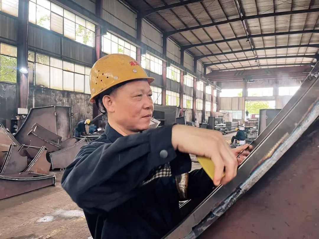 楊襲曾是泰富重工的“一周一打卡”自由職業(yè)者。在行業(yè)寒冬的沖擊下,泰富為了降低成本,不得不采取靈活的用工模式,楊襲在外出尋找工作的過程中,機(jī)緣巧合之下,最終加入了湘冶。盡管他的身份是勞務(wù)關(guān)系,但這從未限制他的擔(dān)當(dāng)。他憑借精湛的鉚焊技術(shù),成立了這個充滿活力的班組。在越南滾軸篩項(xiàng)目中,楊襲憑借其過硬的鉚焊技術(shù),解決了精密焊接中的難題,通過精準(zhǔn)的電流參數(shù)設(shè)置和獨(dú)特的鉚焊手法,確保了鉚焊質(zhì)量,為項(xiàng)目的順利交付立下汗馬功勞。他不僅技術(shù)過硬,而且工作態(tài)度認(rèn)真負(fù)責(zé),為班組奠定了堅實(shí)的基礎(chǔ)。盡管他并非全職員工,但他對工作的投入和專注,讓他在車間里贏得了極高的聲譽(yù)。他深知,只有以身作則,才能帶領(lǐng)班組走向成功。他用自己的行動詮釋著什么是敬業(yè)精神,什么是團(tuán)隊(duì)的凝聚力。